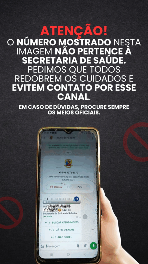 O número mostrado nesta imagem não pertence à Secretaria de Saúde.